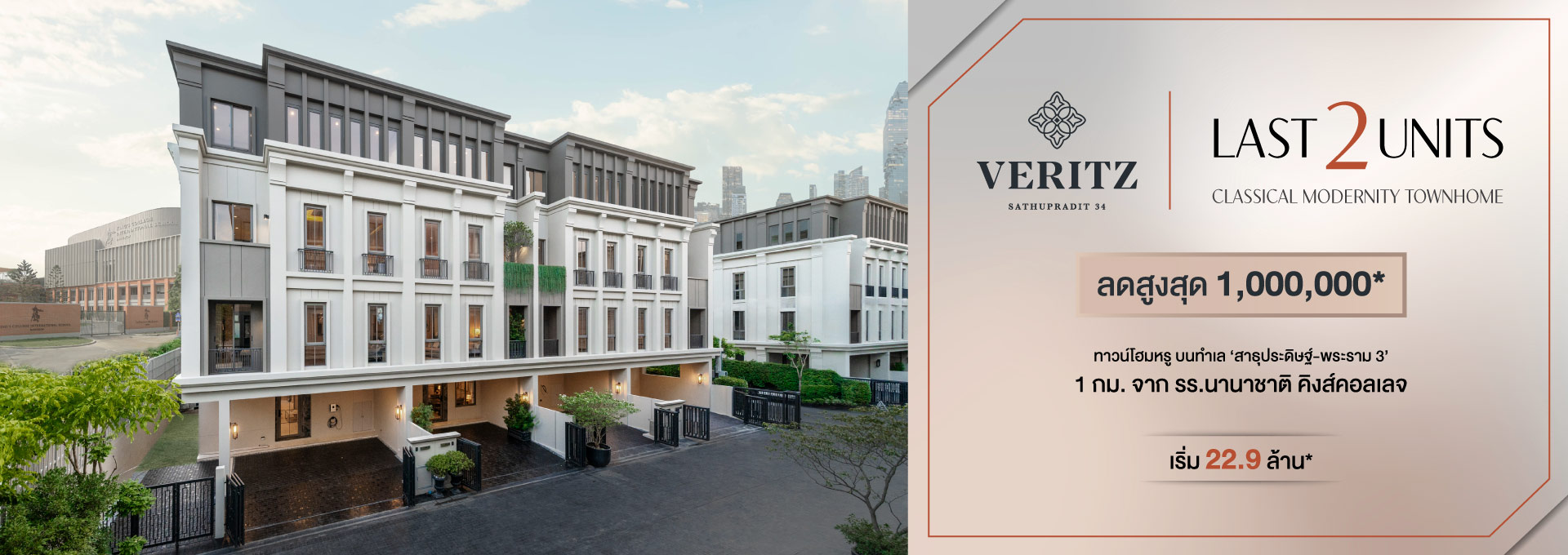 เวอริทซ์ สาธุประดิษฐ์ 34 ทาวน์โฮมพระราม 3 หนึ่งในทาวน์โฮมหรู บนทำเลศักยภาพความเงียบสงบใจกลางเมือง ใกล้ รร.King’s College 950 ม. พร้อมความสะดวกสบายในการเดินทางเพียง 500 ม. จากทางด่วนเฉลิมมหานคร เชื่อมต่อย่านธุรกิจเพียง 4 กม. จากแยกสาทร และ 7 กม. จากแยกอโศก