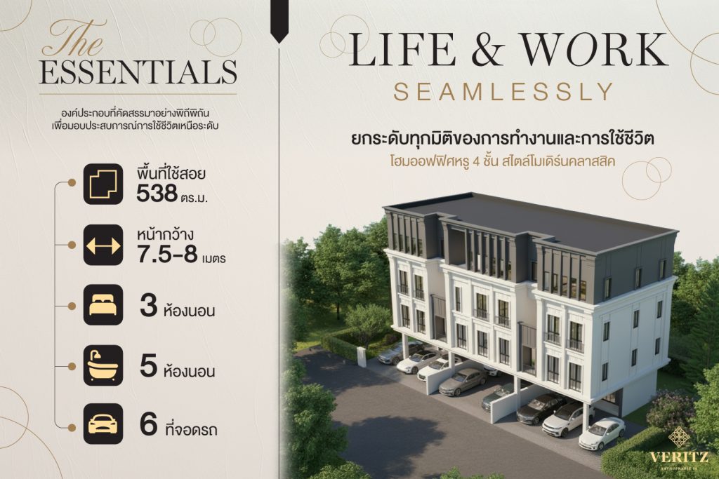 พบกับโฮมออฟฟิศหรู 4 ชั้น ที่จอดรถ 6 คัน